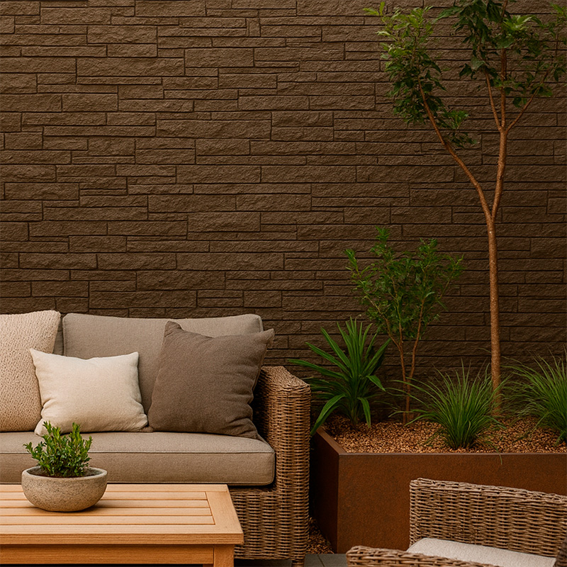 ACABADOS EXTERIORES Pasto Sintético Enrredaderas Sintéticas Pu Stone Flex Stone Lambrin Exterior WPC Piso Junior Deck